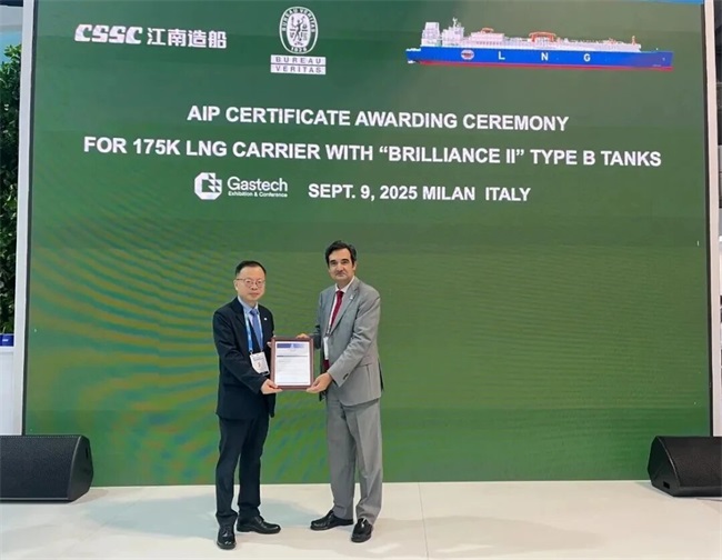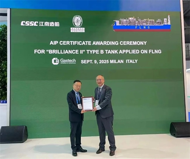 海洋能源網(wǎng)獲悉,近日,在意大利米蘭舉辦的全球天然氣與能源轉(zhuǎn)型領(lǐng)域頂級(jí)盛會(huì) Gastech 2025 上,江南造船(集團(tuán))有限責(zé)任公司(簡(jiǎn)稱江南造船)發(fā)布的兩項(xiàng)基于自主研發(fā)“Brilliance II”B 型儲(chǔ)罐技術(shù)的先進(jìn)解決方案,榮獲法國 BV 船級(jí)社原則性認(rèn)可(AiP),標(biāo)志著江南造船在 LNG 裝備領(lǐng)域的創(chuàng)新成果獲得了國際權(quán)威機(jī)構(gòu)的高度認(rèn)可,為全球 LNG 運(yùn)輸與海上液化裝備的升級(jí)注入了強(qiáng)勁動(dòng)力。