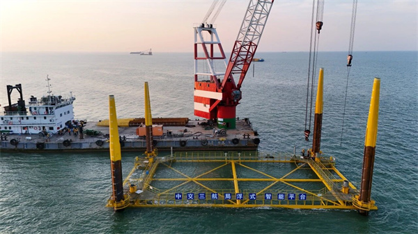 面對行業(yè)可借鑒經(jīng)驗匱乏、施工環(huán)境復(fù)雜、工期緊張等多重挑戰(zhàn),三航局項目團隊堅持“海陸并舉、精益管控、向新求質(zhì)”的理念, 在同臺競技中勇爭第一, 為全國海上光伏規(guī)?;_發(fā)提供“可復(fù)制、可推廣”的中交方案。