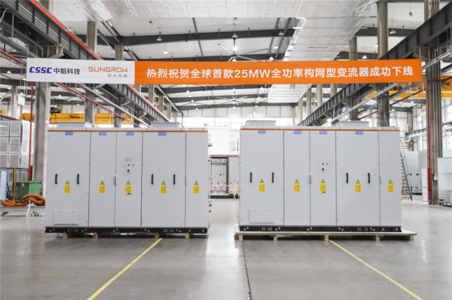 海洋能源網(wǎng)獲悉,9月25日,中船科技與陽光風(fēng)能聯(lián)合研發(fā)的全球首款25MW全功率構(gòu)網(wǎng)型變流器在安徽合肥正式下線。這一變流器是中船科技305-25MW超大型海上風(fēng)電機(jī)組的關(guān)鍵核心部件,其成功下線不僅填補(bǔ)了全球超大容量海上風(fēng)電機(jī)組構(gòu)網(wǎng)型變流器領(lǐng)域的技術(shù)空白,更為我國海上風(fēng)電在弱電網(wǎng)及深遠(yuǎn)海域的縱深開發(fā)按下了“加速鍵”。