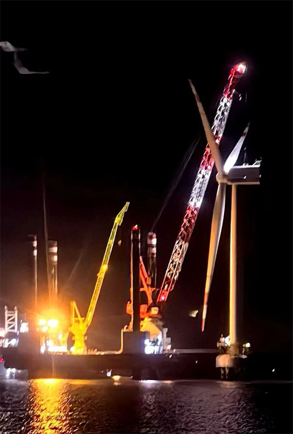 施工期間正值臺風(fēng)多發(fā)的季節(jié),為保障現(xiàn)場工作安全、有序推進,福清海峽公司堅持提前謀劃、周密部署、強化協(xié)調(diào),高效完成四措兩案評審、航道清理、水工證辦理、主軸系統(tǒng)組裝等關(guān)鍵節(jié)點,搶抓臺風(fēng)風(fēng)王“樺加沙”過境后的短暫窗口期,迅速完成從“防臺模式”到“戰(zhàn)時狀態(tài)”的快速轉(zhuǎn)變,將前期準(zhǔn)備“提前量”轉(zhuǎn)化為施工的“高效率”,把計劃的“時間表”變成了推進的“計程表”。在舉國歡慶國慶之際,一頂頂安全帽便是堅守在海上最靚麗的“中國紅”,現(xiàn)場團隊安全、高效地完成葉輪、主軸系統(tǒng)、機艙罩殼等大部件拆卸、復(fù)裝與驗收工作,以“中國制造”的核心技術(shù)突破,充分彰顯三峽人自主創(chuàng)新與海上風(fēng)電產(chǎn)業(yè)鏈自主可控的決心。