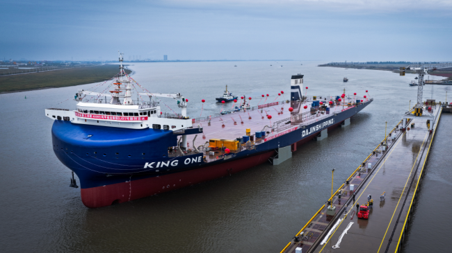 此次首制船的成功下水,是大金船舶建造硬核實(shí)力的充分體現(xiàn),更是大金業(yè)務(wù)范圍從風(fēng)電裝備制造向全產(chǎn)業(yè)鏈延伸的重要里程碑。后續(xù),KING ONE 號(hào)將積極推動(dòng)試航與取證程序,預(yù)計(jì)將于 2026 年初投入首航。